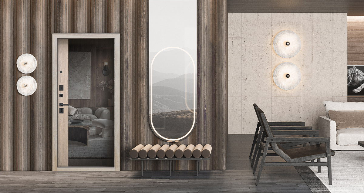 Входная дверь АСД Беркут с зеркалом "Дуб галиф натуральный"
