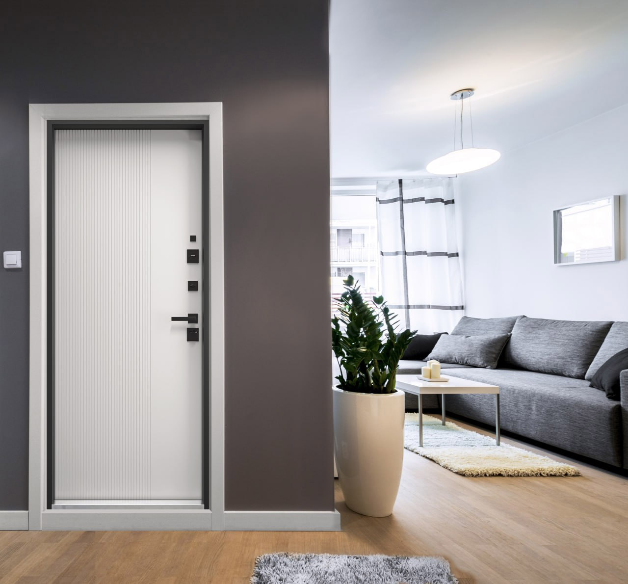 - При покупке входной двери предоставляем скидку 5% на межкомнатные двери